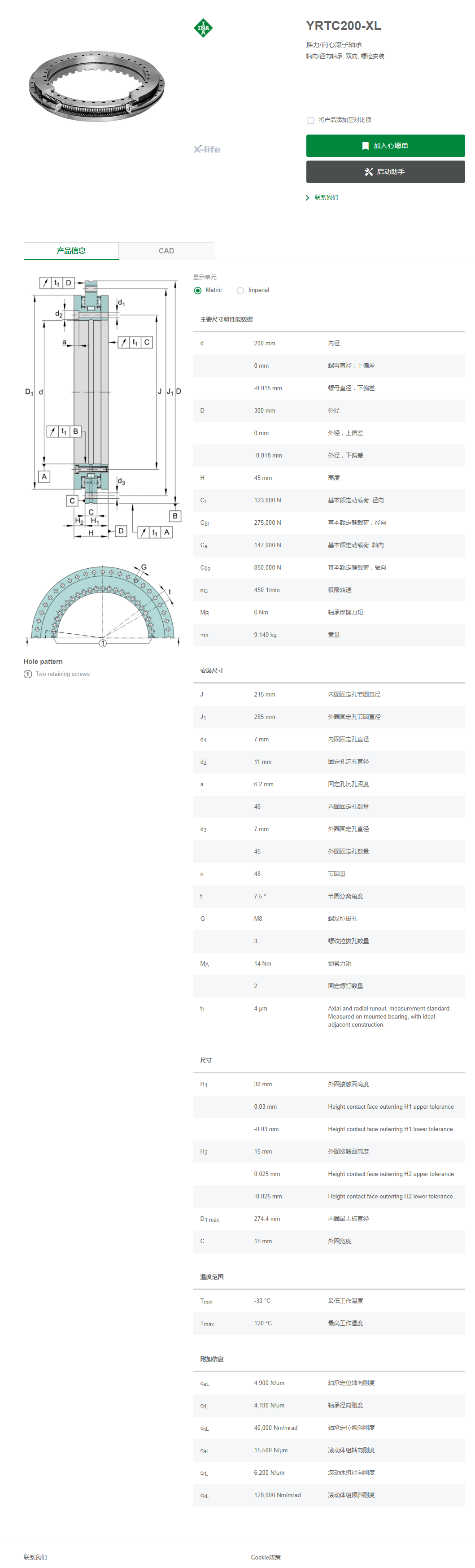 • YRTC200-XL尺寸參數INA 轉臺軸承
