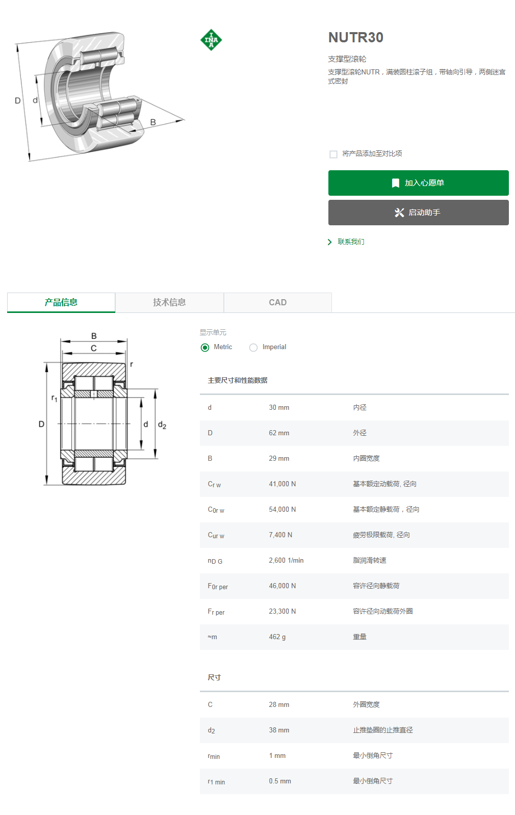 INA滾輪軸承NUTR30-A尺寸參數(shù)