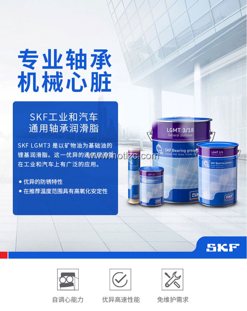 • SKF工業和汽車通用軸承潤滑脂 SKF潤滑脂是以礦物油為基礎油的鋰基潤滑脂。這一優異的通用潤滑脂在工業和汽車上有廣泛的應用