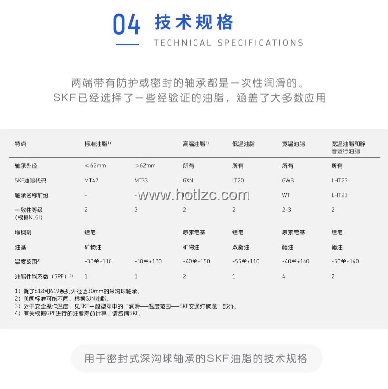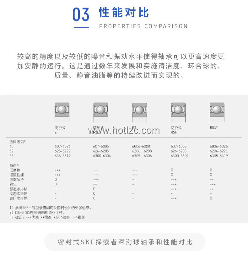 • SKF深溝球軸承是一種儀器器件,有開式、雙面帶密封圈,帶密封的軸承在外圈上開有可裝密封圈或防塵蓋的溝槽,適用于高轉速甚至極高轉速的運行。